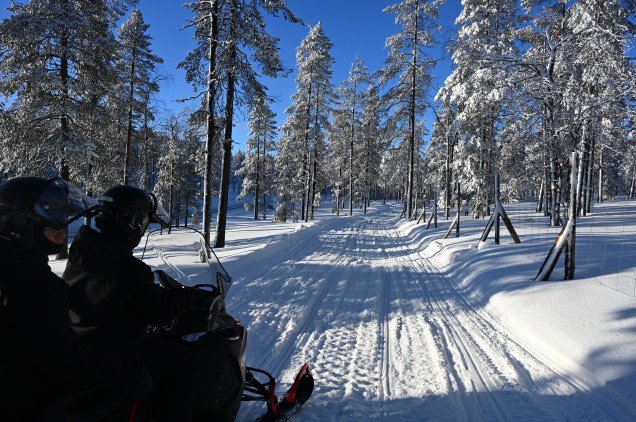 Momo et Adri chacun aux commandes se sont régalés et ont promenés les parents ! Il existe des pistes destinées uniquement aux engins avec une signalisation spécifique ce qui facilite la navigation . Certes les pistes sont un peu bosselées par la circulation un peu intense en cette période mais la conduite reste assez facile ! Bon, Momo nous a fait un petit renversé de snowmobile mais quasiment à l’arrêt et sans bobos ! Ils ont très bien conduit surtout que la piste n’était pas toujours facile notamment dans les descentes! Et puis, qu’elle liberté, surtout que nous étions en toute autonomie ! Le Safari avec un guide, certes vous emmène un surplus d’information mais aussi une contrainte terrible de suivre les autres engins en file indienne comme les rennes du parc Santa Claus à Rovianiemi !