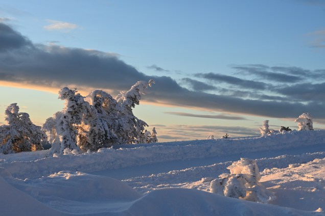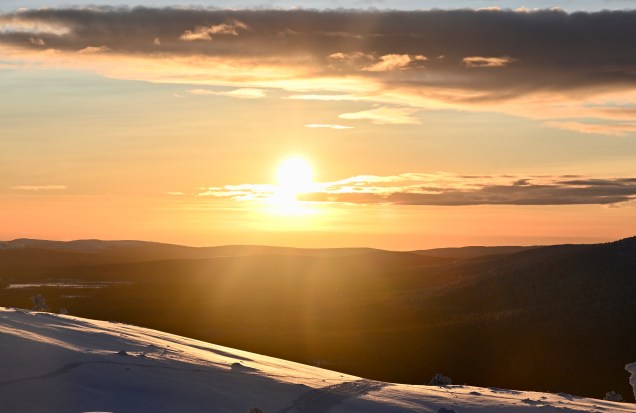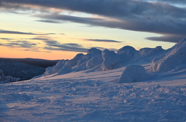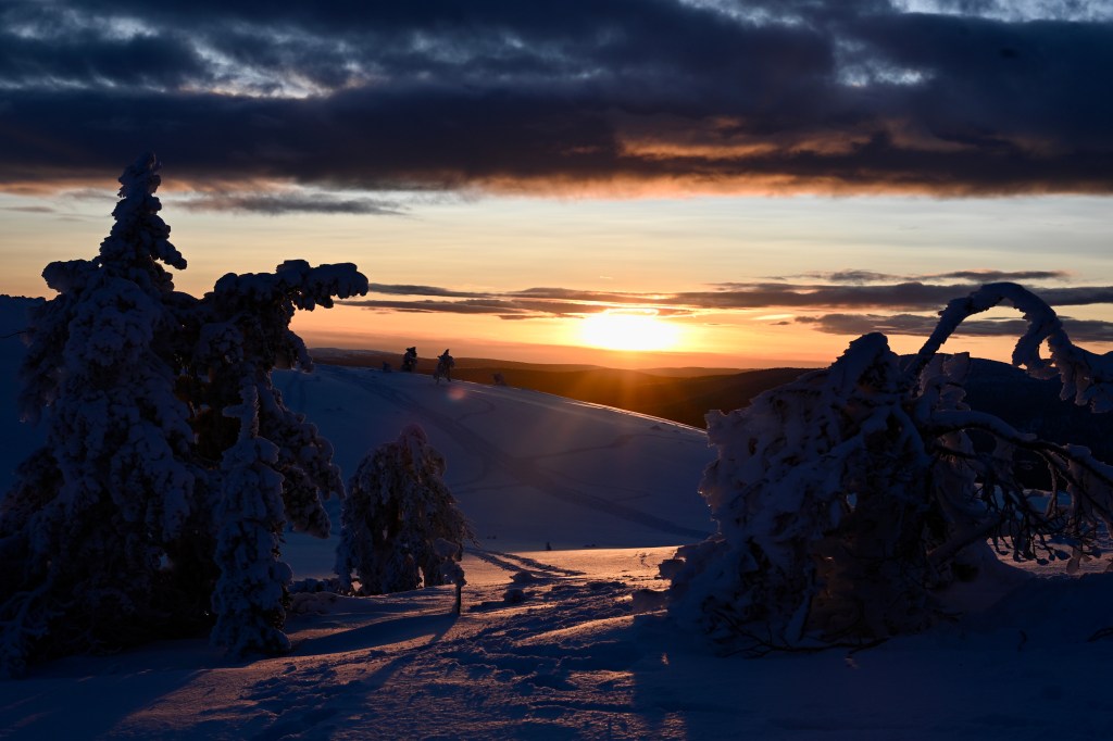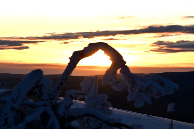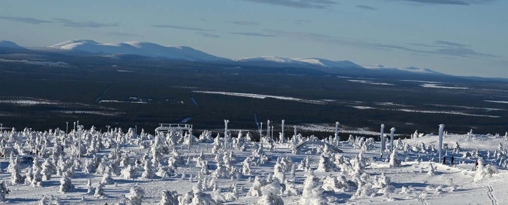 Sur la route du retour, nous avons grimpé le mont Levi qui offre une point de vue magnifique sur la vallée avec les lacs gelés et les forêts enneigées . On sent que la haut, il fait froid et que le vent souffle fort . Témoins, les arbustes cristallisés par le givre offrant un paysage qui ressemble parfois à l’Islande l’hiver ! MAGNIFIQUE 🤩 . Évidement le spot était propice à voir Monsieur le soleil disparaître dans les nuages ! De belles couleurs , certes nous avons vu mieux , mais le lieu était propice à faire de jolies photos et passer une très belle fin de journée !