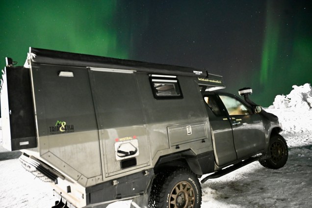 Les aurores boréales se produisent le long d’un ovale positionné au-dessus de la terre par rapport au soleil. Elles sont en général visibles au-dessus du cercle polaire et là nous y sommes avec une latitude supérieure à 68° Nord . Nous espérons lors de notre remonté vers le Cap Nord avoir la chance de pouvoir encore être les témoins de cette rencontre magique ! Il est à noter que notre TinHux 2 a eu son aurore à lui et c’est bien mérité, lui qui nous transporte partout avec bienveillance !