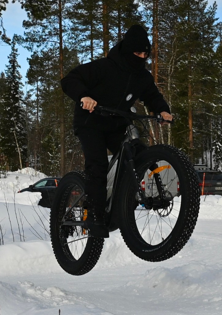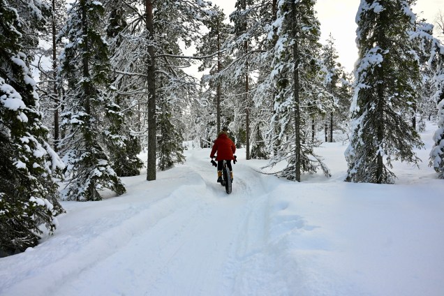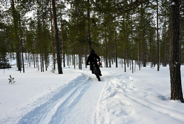 Aujourd’hui c’était activité Fat Bike dans la montagne de Levi . La » petite reine » avec des pneus surdimensionnés et faiblement gonflés donne une adhérence bluffante sur la neige fraîche et c’est très belle activité à faire dans le coin ! Imaginer tracer sur des pistes enneigés à travers la forêt avec des dénivelé parfois important, c’est extra ! Ça monte, ça descends … même parfois trop car il y a eu des chutes mais sans gravité rassurez vous ! Un bel exercice en tout cas, la fatigue au bout des 24 kilomètres enneigés était bien là . Vous imaginez bien sûr que Adri lui a fait bien plus que la distance de la piste avec les allers et retour pour attendre les parents !