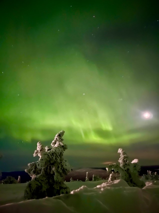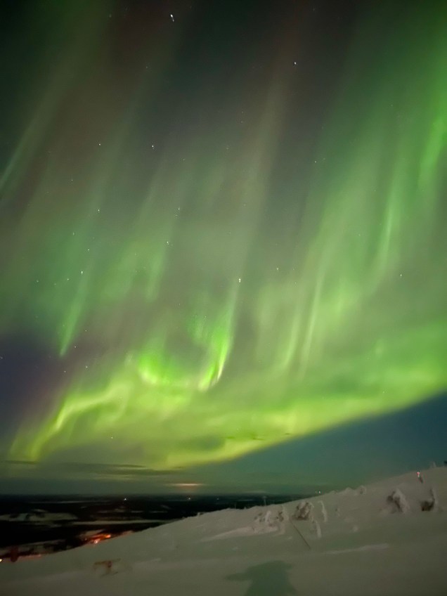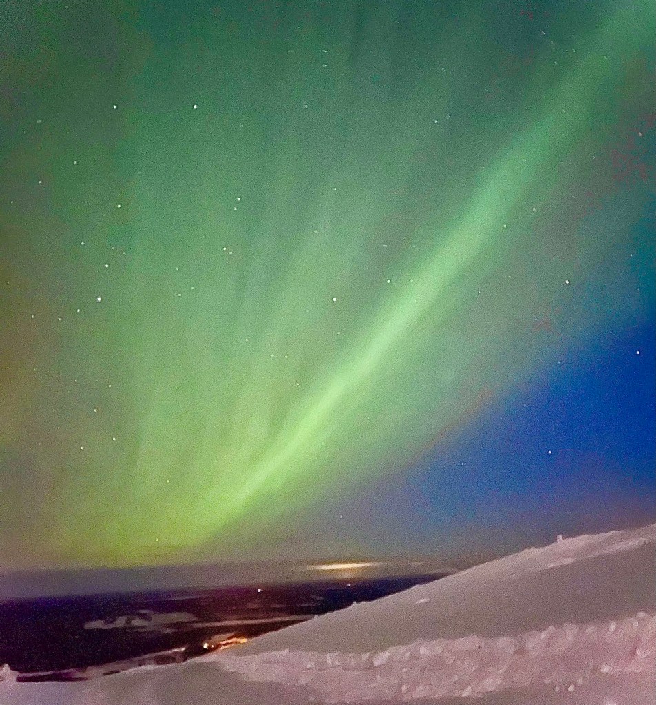 Qui n’a jamais rêvé de voir apparaître dans la nuit noire polaire le spectre émeraude des aurores boréales ? Aussi magique qu’hypnotique, le spectacle ne peut qu’enivrer. Nous avons eu la chance d’assister à ce spectacle étonnant et émouvant . Le ciel faisait feu de partout sur la colline, merci sa majesté d’avoir ouvert ce light show naturel ! Fascination, émotion, beauté … magie , le CD4 vraiment sous le charme !