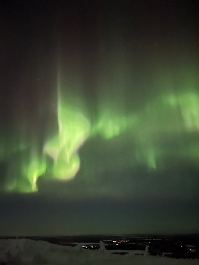 C’est pourquoi les aurores boréales n’ont rien d’automatique. Elles sont un phénomène naturel, au même titre que le temps qu’il fait. Leur apparition et leur intensité dépendent de l’activité solaire, et leur emplacement dépend du champ magnétique terrestre. Il faut bien sûr que le temps soit froid et surtout dégagé ce qui nous avait manqué jusqu’à présent !