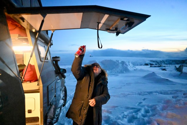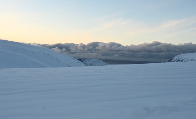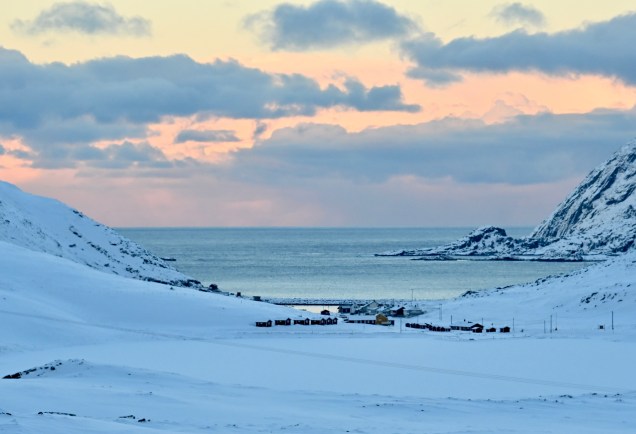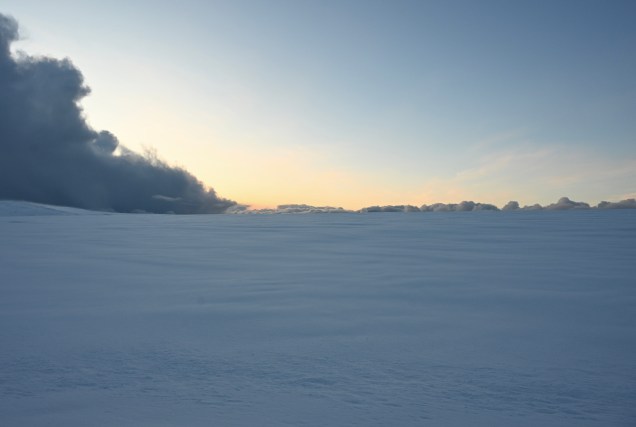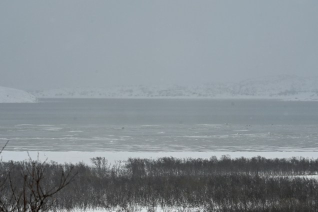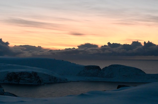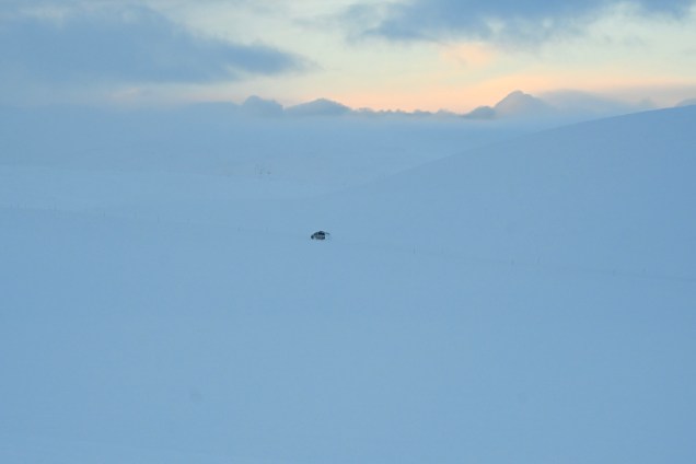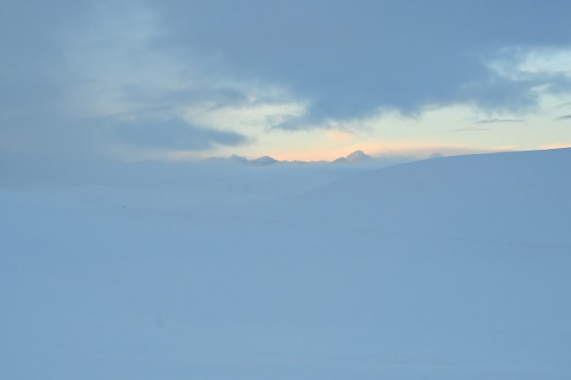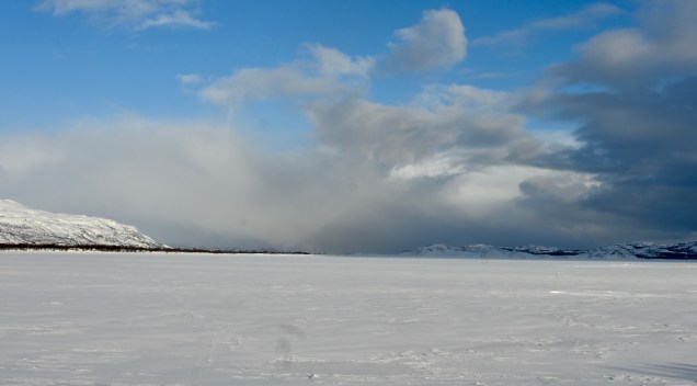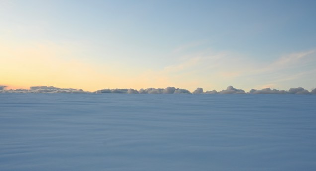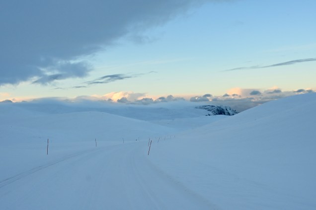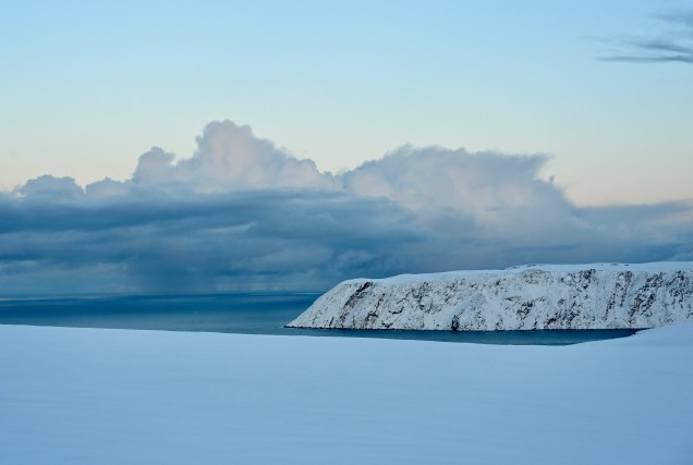 Si ce matin, on nous avez raconté la journée que nous allions vivre on aurait crié à l’imagination … et pourtant tout s’est passé comme dans un rêve . On a tout eu : des paysages enneigés avec des dunes de neige , un océan Arctique qui déchire la glace petit à petit, un longe côte le long du fjord qui se jette dans la mer, du soleil rasant dans les nuages, plusieurs tempêtes de neige et au bout du bout… plus de route !