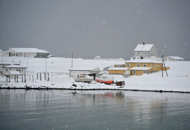 Un peu de blanc sur l’échelle, tiens il a neigé cette nuit ! En bout de fjord, l’océan est gelé … Une chambre d’hôte typhique sur le banquise ! Le temps se met au grisouille avec la neige sa copine. L’Océan arctique commence à déchirer la glace Le spectacle du jour commence ! Il n’y aura pas d’entracte tellement c’était dense ! Un bras du fjord , la glace là aussi se déchire ! La neige s’étale de partout … Et monsieur le soleil revient éclairer la scène ! Le look de la petite maison dans la neige qui regarde le fjord ! Un autre style : en avant toute et barre tout droit ! Une petite île comme ça ! Un cycliste rencontré entre deux tempêtes . Il s’appelle Rodolphe et il est carrément fou ! Écoutez le çi dessous !