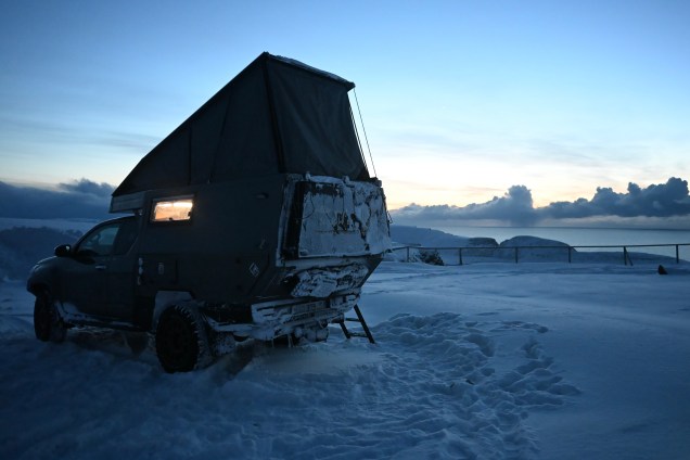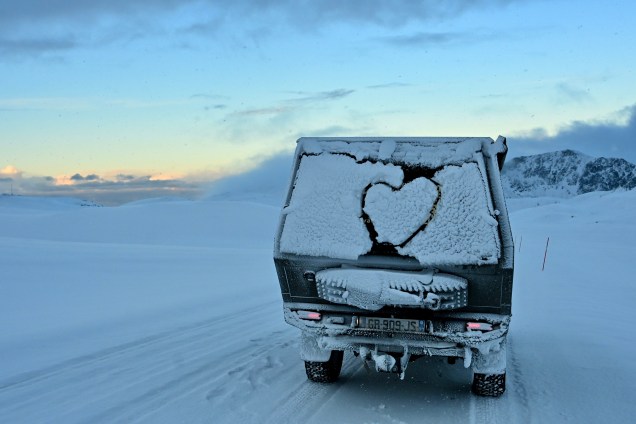 Nous y voilà donc… au goût d’un de nos rêves ! Ce n’a pas été sans mal, sans heures de bricoles, de préparations et même d’emprunts ! Mais voilà, il a des objectifs de vie que l’on veut réaliser dans son parcours sur terre et cette visite au bout du bout de l’Europe était un désir profond, peut être même un peu déraisonné de le faire en hiver . Mais que voulez vous, parfois il faut prendre quelques risques, se faire un peu peur pour se sentir vivant ! Le canapé, même s’il est confortable et si on se sent physiquement bien ne vous apporte rien d’interessant, c’est à la limite de soi que tout se passe et que l’on grandit et que l’expérience vous pousse loin ! CQFD