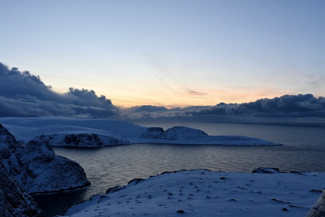 En arrivant sur le lieu avec un spectacle de nuages jouant à cache cache avec le soleil qui s’endort, il n’en fallait pas plus pour se croire au bout du monde en vivant une expérience extra-ordinaire. Alors oui, nous avons eu beaucoup de chance de découvrir le Cap Nord dans ces conditions de météo mais après tout ne dit-on pas que la chance appartient aux audacieux ?