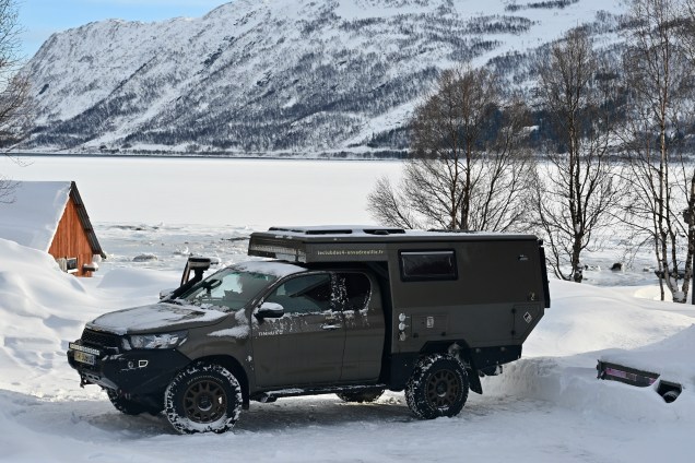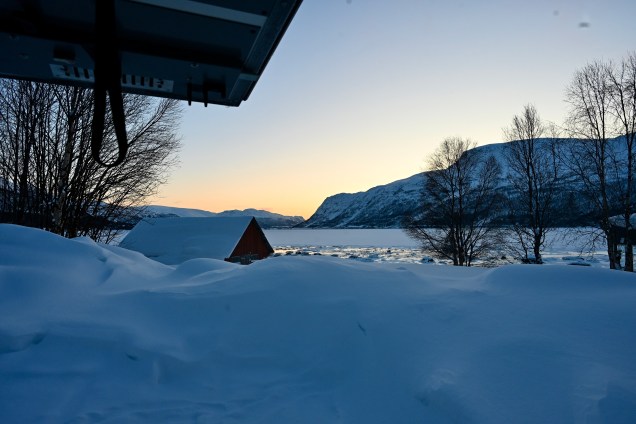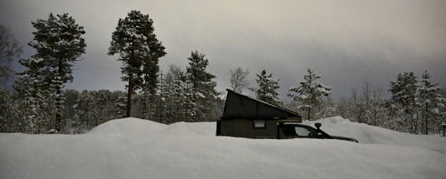 Un petit coup de froid avec un -18 cette nuit. Ce ne sera pas de même avec les Lofoten qui bénéficient d’un micro climat exceptionnel comme nous le verrons demain ! En attendant ce matin il a fallu un peu de temps pour dégager la glace et pouvoir fermer le toit ! Un peu de temps aussi sur la route avec beaucoup de neige et donc un conduite assez stressante . Ce soir notre cocon est dans la neige , on adore ! 🥰