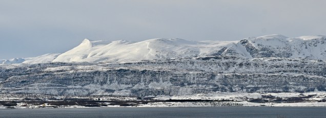 Langfjord > Quelque part sur la E6 (68.12° Nord / 21.13° Est ) : 289 kms . Route avec forte neige