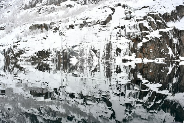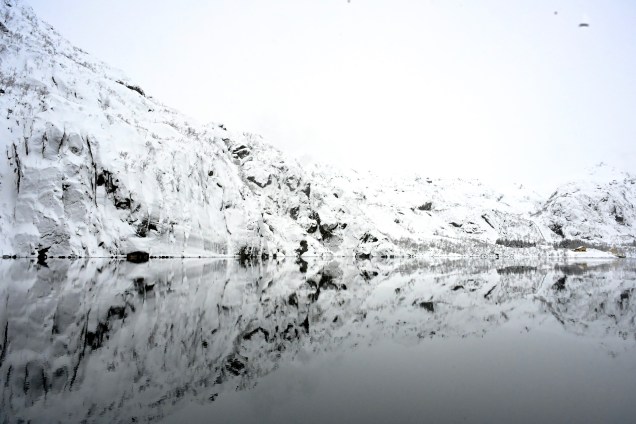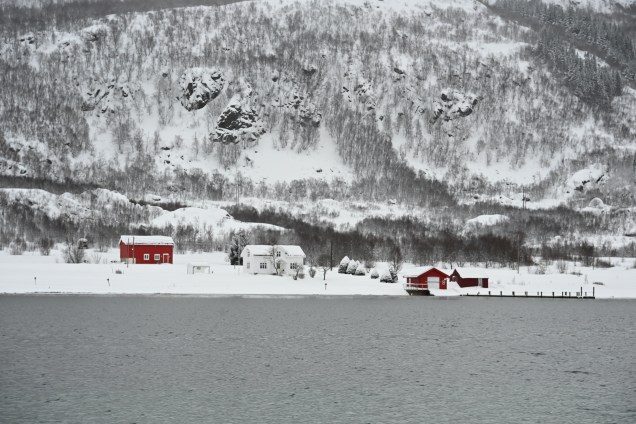 La croisière « rapide « nous emmène aussi au fjord mythique de Trollfjord, un bras de mer de deux kilomètres de longueur, issu du Raftsund, le détroit qui sépare les deux archipels du nord de la Norvège que sont les îles Lofoten et les Vesterålen. Un endroit impressionnant , non habité avec des parois glacées très impressionnantes , un véritable décor d’artiste ! Le retour s’est fait en observant les berges décor nature avec des maisons posée ça et là , magnifique !