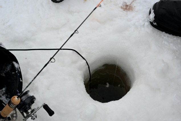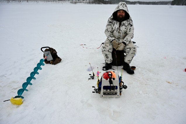Une autre expérience aussi sur les lacs gelé , « le trou marrant « . La pêche blanche ou la glace est carottée par une machine laissant un trou bien solide ou l’eau arrive et vous appelle à la pêche ! Une minuscule cane à pêche plongée et hop les perches qui circulent sous la glace épaisse mordent à l’hameçon ! Nous avons eu la chance de voir un pro du coin qui nous a présenté son matériel et sa technique . Dommage, que nous n’ayons pas vu une prise, le moment n’était visiblement pas favorable , une autre fois peut être !