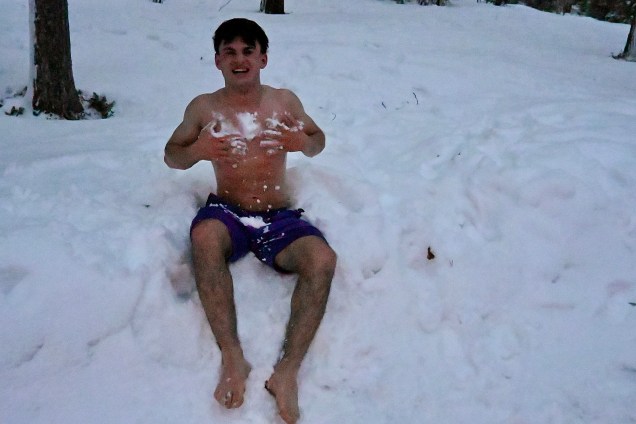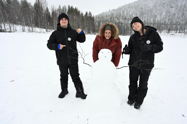 Découverte des lieux , location des vêtements grand froid et puis déjà des drôleries des Loulous qui n’ont pas leur pareil pour faire rire ! Adri nous en a même fait une belle en allant se jeter tout nu dans la neige après le sauna ! Un vrai Finlandais ce grand enfant !