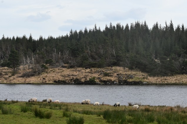 Un petit lac bordé par des sapins et surveillé par les innombrables moutons !
