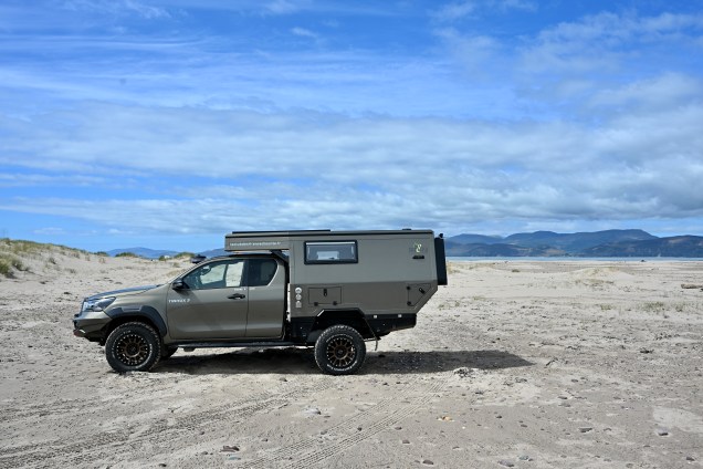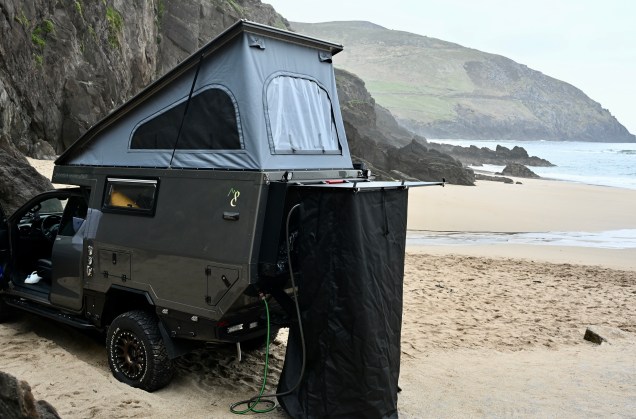 Journée douche ce matin et face à la mer ! La cabine extérieure, chauffée s’il vous plait a été de sortie… Finalement même si nous n’avons pu parfaitement notre maison à roulettes pour cette vadrouille, toutes les fonctionnalités sont là : électricité 12 et 220 V, eau chaude, chauffage, douche, vastes placards , cuisine au top avec induction et frigo, préparation 4×4 pour les pistes …bref tous les ingrédients pour vadrouiller sans limites ! Et puis que le fait que tout ne soit pas terminer dans les détails nous permet de peaufiner nos idées… Oui, TinHux 3… toi, on va te garder longtemps !!!