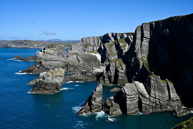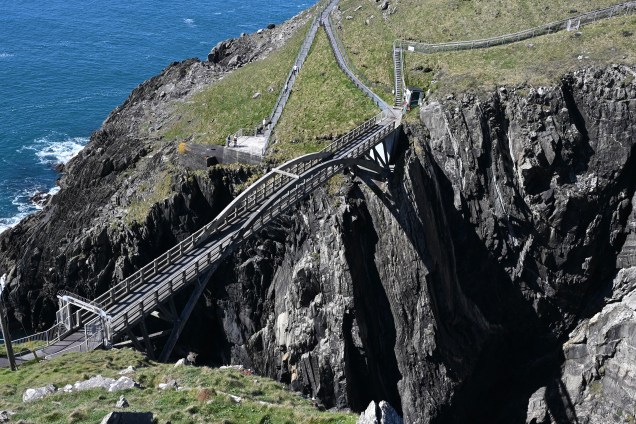Située à l’extrémité ouest de la péninsule, la station de signalisation de Mizen Head que nous avons visité est aussi une belle surprise . Elle a été construite pour sauver des vies sur les rochers traîtres qui entourent le point le plus au sud-ouest de l’Irlande. Il s’agit d’un complexe de l’ère victorienne, construit il y a plus de 100 ans pour aider les bateaux de pêche à éviter les rochers par temps sombre et orageux. La traversée du spectaculaire pont en arc qui s’avance dans le vide, suspendu à 45 mètres au-dessus des eaux sauvages de l’Atlantique, reliant les deux côtés de la spectaculaire falaise surplombant la mer a été une belle émotion le paysage est à couper le souffle .