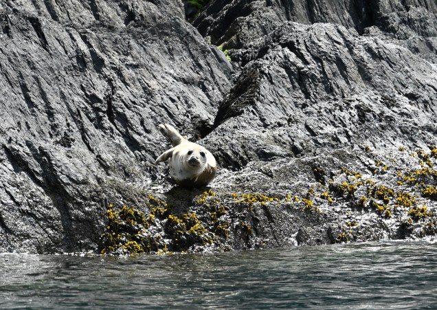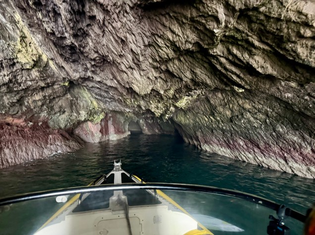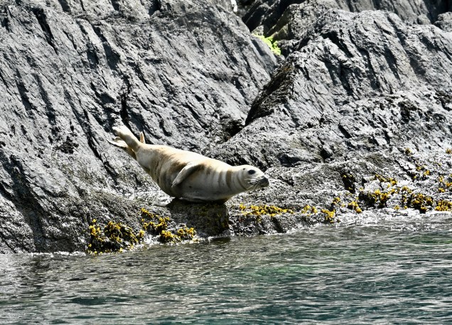 Point d’orgue aussi de cette journée en apothéose, la sortie en bateau pour aller à la « chasse » à la baleine . Totalement impliqué et passionné, le capitaine nous emmène à la recherche de phoques ,dauphins et baleines avec des explications de sa part en anglais….amoureux de points de vue et d animaux marins c’était absolument magnifique et inoubliable ! Oui mais… la nature reste seule à décider de voir les baleines malgré la saison qui n’est pas encore propice et en observer était un challenge ! Et … la surprise à été magique , Madame baleine était là et qu’elle belle rencontre, elle a tournée autour de notre semi-rigide nous saluant même avec une belle sortie d’eau ( la photo pour la présentation de l’article). Eh bien merci tout plein dame nature 🙏. La suite nautique, outre les lions de mer a aussi été superbe avec des panoramas maritime plein de clins d’œil ! Bravo Steph de nous avoir trouvé une aussi belle surprise.. père et fille, qu’elle équipe !