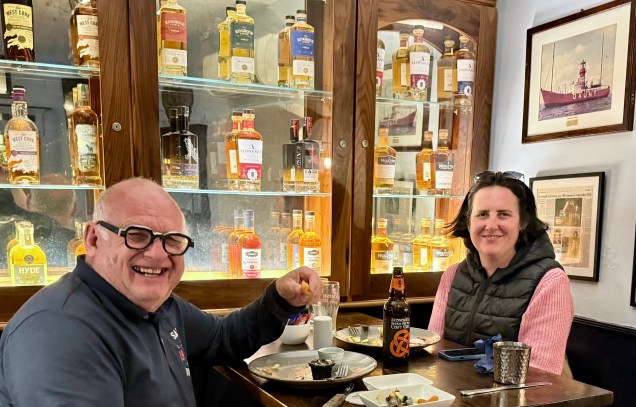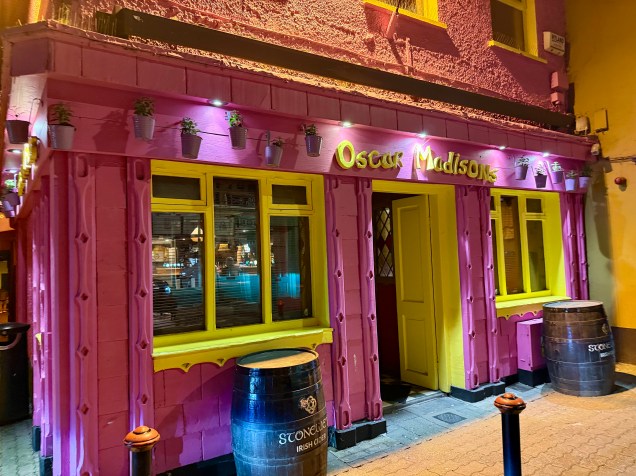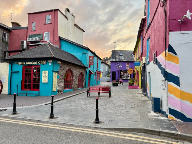 Nous avons fini cette journée étape à Kinsale, un port pittoresque situé dans un bras de mer . Toujours bien entretenu, le centre a adopté au fil des années la particularité des towns très touristiques irlandais : des façades aux couleurs plus pétantes et originales les unes que les autres, toujours jolies sur les photos ! De plus en flânant dans les ruelles étroites et bordées de boutiques aux couleurs chatoyantes, on sent la forte orientation locale et créative dont font preuve les commerçants de la région. Nous avons goûté à la gastronomie locale soit disant excellente… en bon Français, nous n’avons pas trouvé de saveurs particulières, nous n’avons pas sûrement choisi disons le bon établissement ! Après avoir jardiné pour trouver un bivouac finalement pas terrible en fin d’après midi , le repas fini , nous avons à la nuit trouvé un spot superbe qui surplombe la ville dans l’écrin du bras de mer ! Vraiment chouette, comme quoi la digestion a été bonne et nous a bien inspiré !