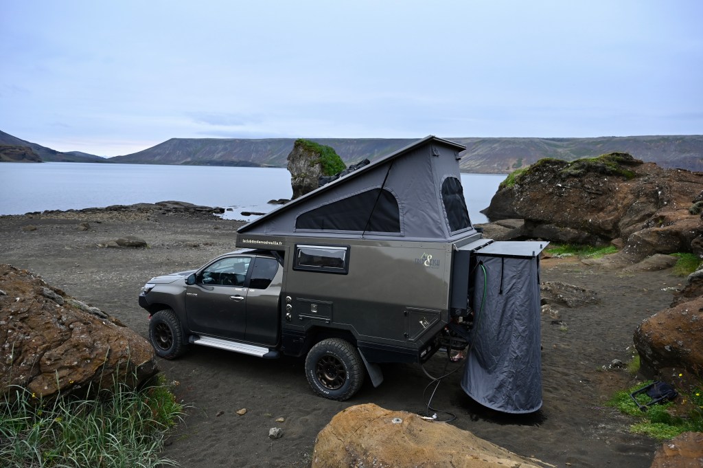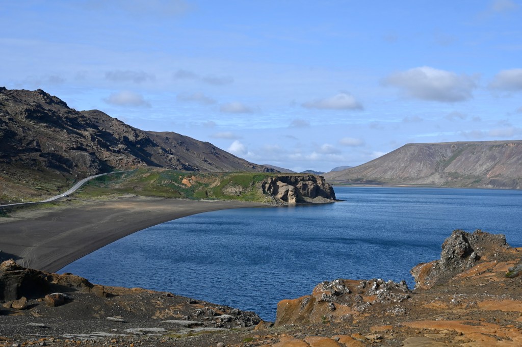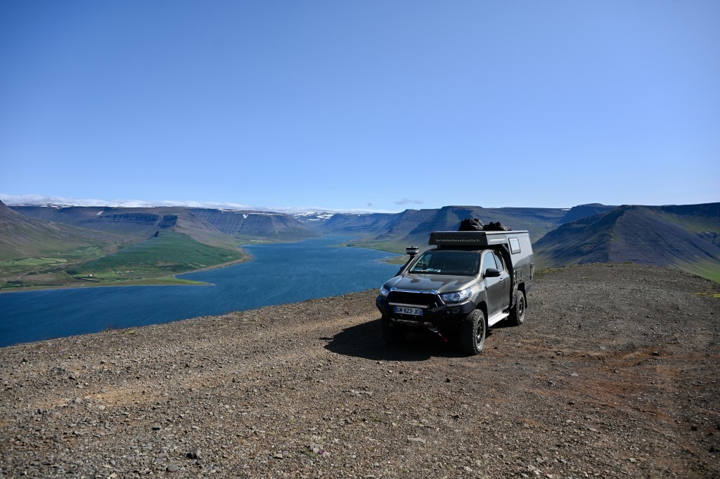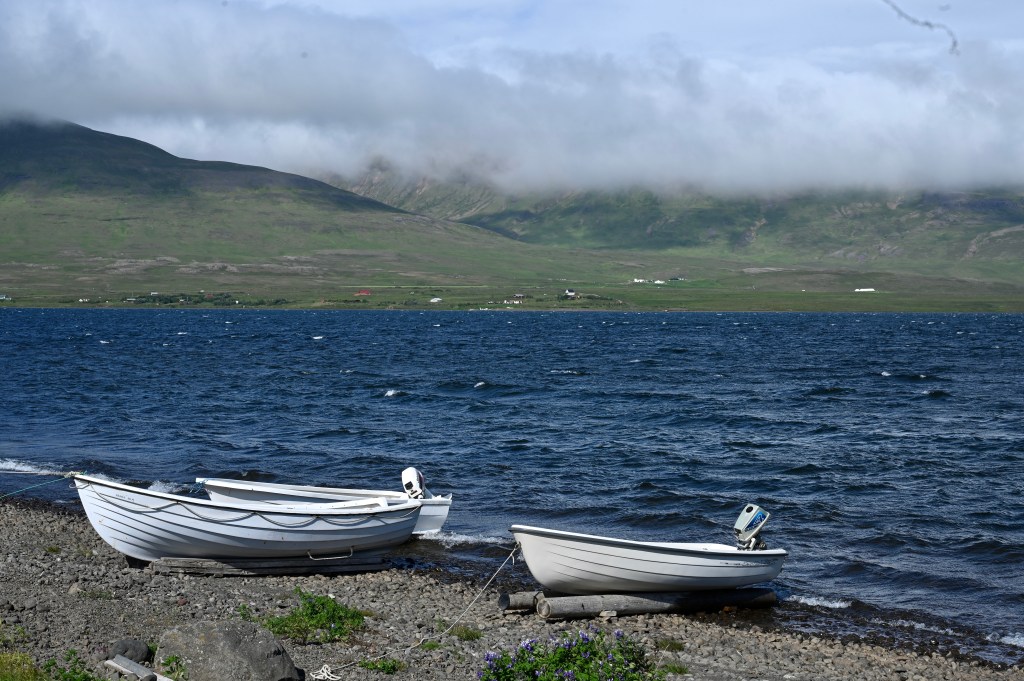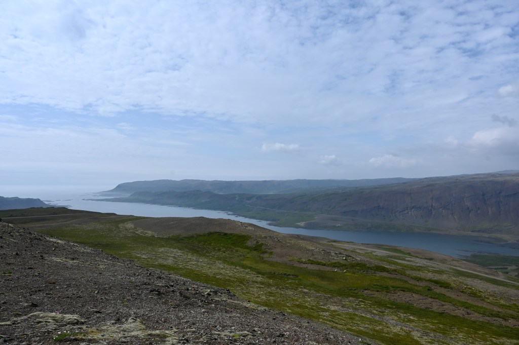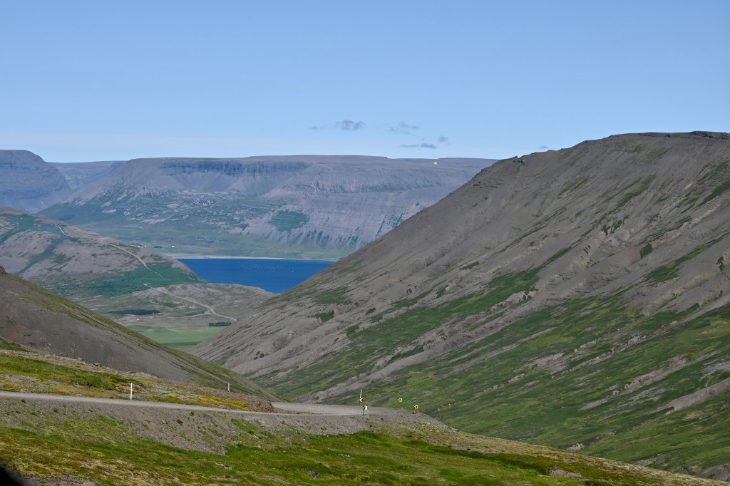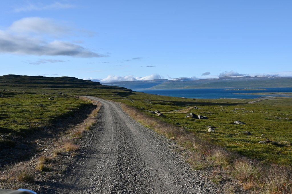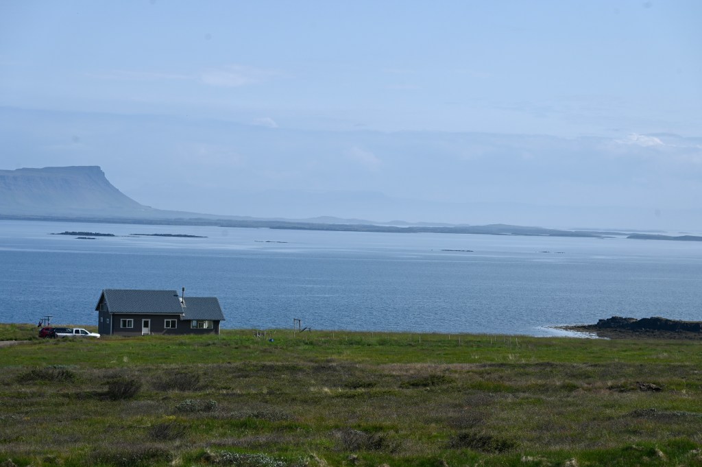 Nous sommes dans le Nord de l’Islande à présent, il nous reste 6 jours encore à profiter ! Après une bonne nuit dans un silence total, nous reprenons la route entre bitume et piste très faciles . Dans le pays, ces deux types de de routes se mêlent parfaitement . De temps en temps on prends un chemin de traverse plus ou moins facilité et là, c’est la surprise d’une autre vision du décor ! On est seul à découvrir les splendeurs de l’Islande d’une manière plus sauvage ! Ce matin nous avons traversé de superbes prairies avec des lacs encadrés par de petites montagnes , superbe et bucolique ! Dans ce Nord, les fjords se font moins escarpés et plus large, un autre style, mais ceux du Nord Ouest, c’était quand même quelque chose !!!