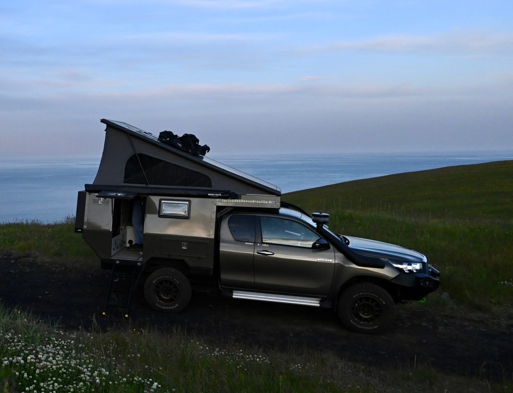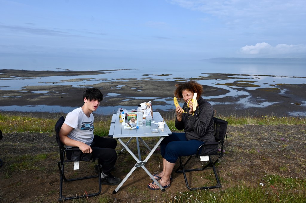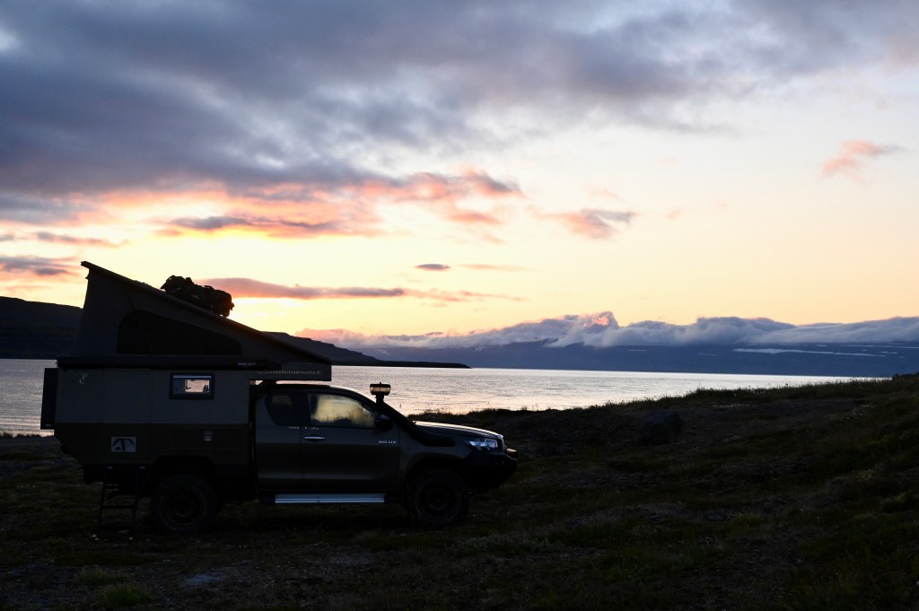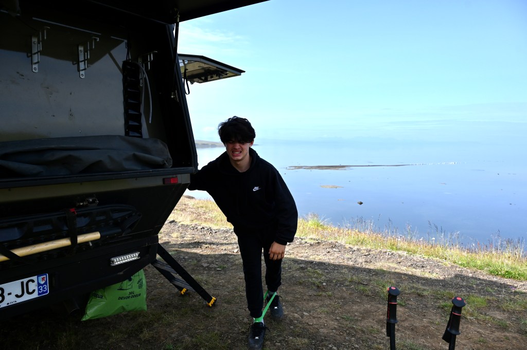 Notre troisième point cardinal de vadrouille : le Nord ! Tourné face à l’Océan glacial Arctique et au cercle polaire, nous sommes a plus de 66° Nord . Pourtant il paraît que c’est la région la plus ensoleillée d’Islande, ça promet … on risque faire un sans faute météo pour ce voyage où nous avons eu pour l’instant qu’un jour de pluie ! Plusieurs points d’orgue nous attendent en cette dernière semaine où nous espérons taquiner de belles pistes et demain peut être, voir des baleines …