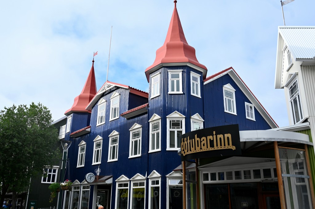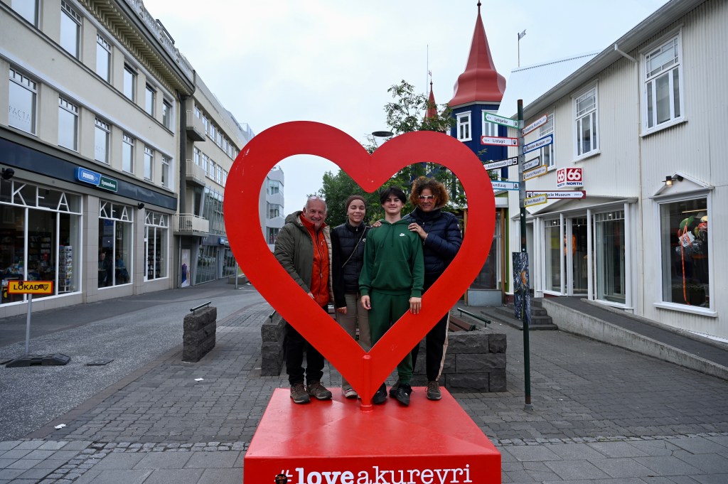 On ne passerai pas ses vacances à Akureyri qui est la quatrième ville d’Islande avec plus de 20.000 habitants mais qui est finalement un lieu de passage plutôt agréable. On a flâné un peu dans la rue principale dans les boutiques et les nombreux café. La caractéristique de la ville est aussi les feux de signalisation … il mûrissent du vert au rouge et celui çi est en forme de cœur ! Cela a redonné soit disant le sourire aux habitants après la crise économique de 2008 ! La ville se veut ressembler à Reykiavik en tout cas elle a en un peu la même structure mais on est loin du compte cette bourgade reste un peu triste et aussi beaucoup moins peuplée !