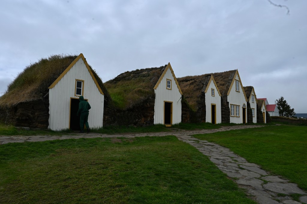Petite visite dans l’après midi avec le ferme Glaumbær. Au vu de l’agriculture du pays qui est très intense, il était intéressant de visiter ce lieu . Il y a encore quelques siècles, tout le monde vivait dans une maison d’herbe en Islande, riche et pauvre, et il y a encore plusieurs maisons d’herbe en Islande, témoignant de ce passage et ce complexe appelé ferme de Glaumbær est intéressant à découvrir .La vieille ferme islandaise avec de petits bâtiments séparés. Les plus fréquemment utilisés étaient unis par un passage central, tandis que les outils et le stockage ne pouvaient être atteints que de l’extérieur. Ce style de construction au toit d’herbe était universel dans les zones rurales de l’Islande jusqu’en 1900, quand elle a été progressivement remplacé par du bois ou du béton.