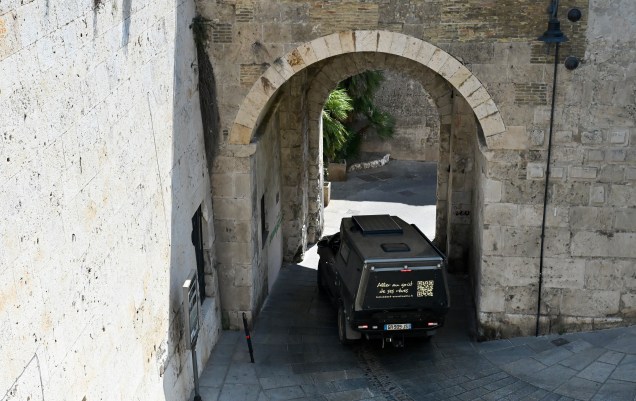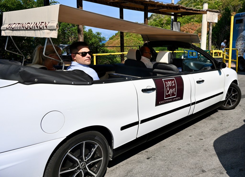 Aller à Capri, c’est toute une organisation ! D’abord il faut trouver de quoi garer TinHux 2 et là tout commence à se compliquer car son gabarit ne convient pas au parking privé qui généralement ne font pas plus de 1,90 m de haut . Pour le reste, interdit de se garer plus de 3 heures , une place privé en extérieur c’est 70 euros la journée et de plus il garde les clés pour bouger l’auto et là … pas question de laisser le volant à qui que ce soit ! Mais Pierre ne lâche jamais et il a dégoté une place près du tourist office , gratuite et sans limite de temps … il n’y en a que 3 places comme ça à Sorrente, Pierre est un génie de la débrouille !!!