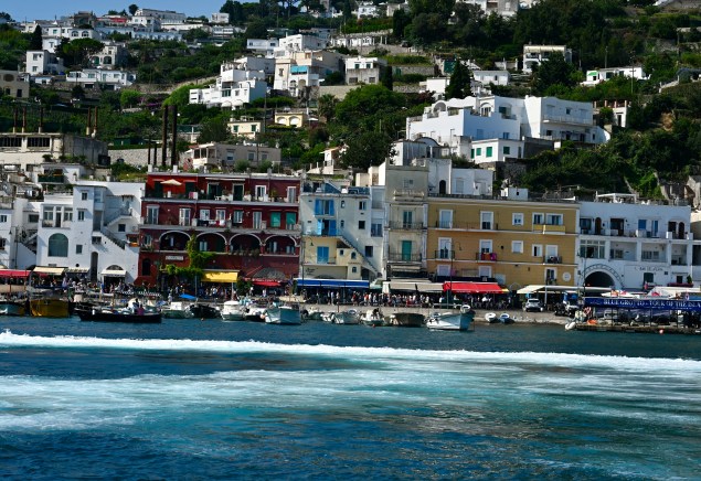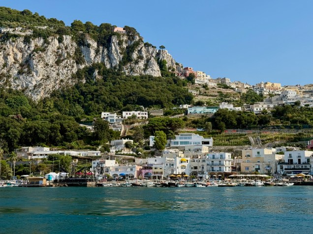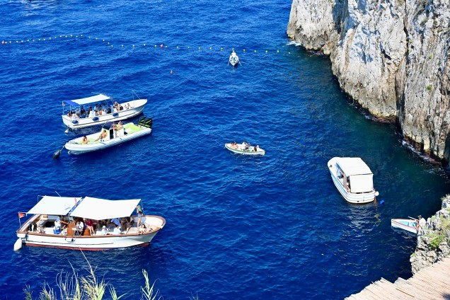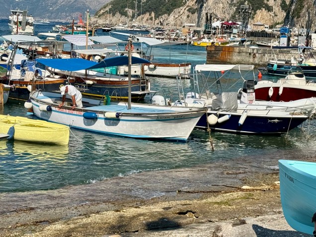 Deuxième histoire, prendre un bateau sans se faire « arnaquer », bon avec un peu d’expérience, on y arrive en faisant attention aux sollicitations extérieures ! Leïla a pris des billets à 45 euros go and go back par personne, on a vu jusqu’à 70 ! Troisièmement, la restauration et là les sommets sont atteints : ça va de 8 euros le simple café, le jus d’Orange à 12 , le croque monsieur à 19 ( oui, avec quelques maigres frites !) . On continue avec le transport sur l’île et là c’est l’éclate … le tour en bateau c’est 24 euros par personne sans visiter la fameuse grotte bleue pour faire deux ronds dans l’eau en barque à 9 euros le tour donc 18 par personne pour rentrer à l’intérieur et si vous voulez faire deux heures de baignade à bord d’un bateau typique du coin , c’est 200 euros! Bref tout est exploité et tarifé à Capri et au bout du compte à la fin beaucoup de personnes reviennent déçu parce qu’ils se sentent arnaqués !